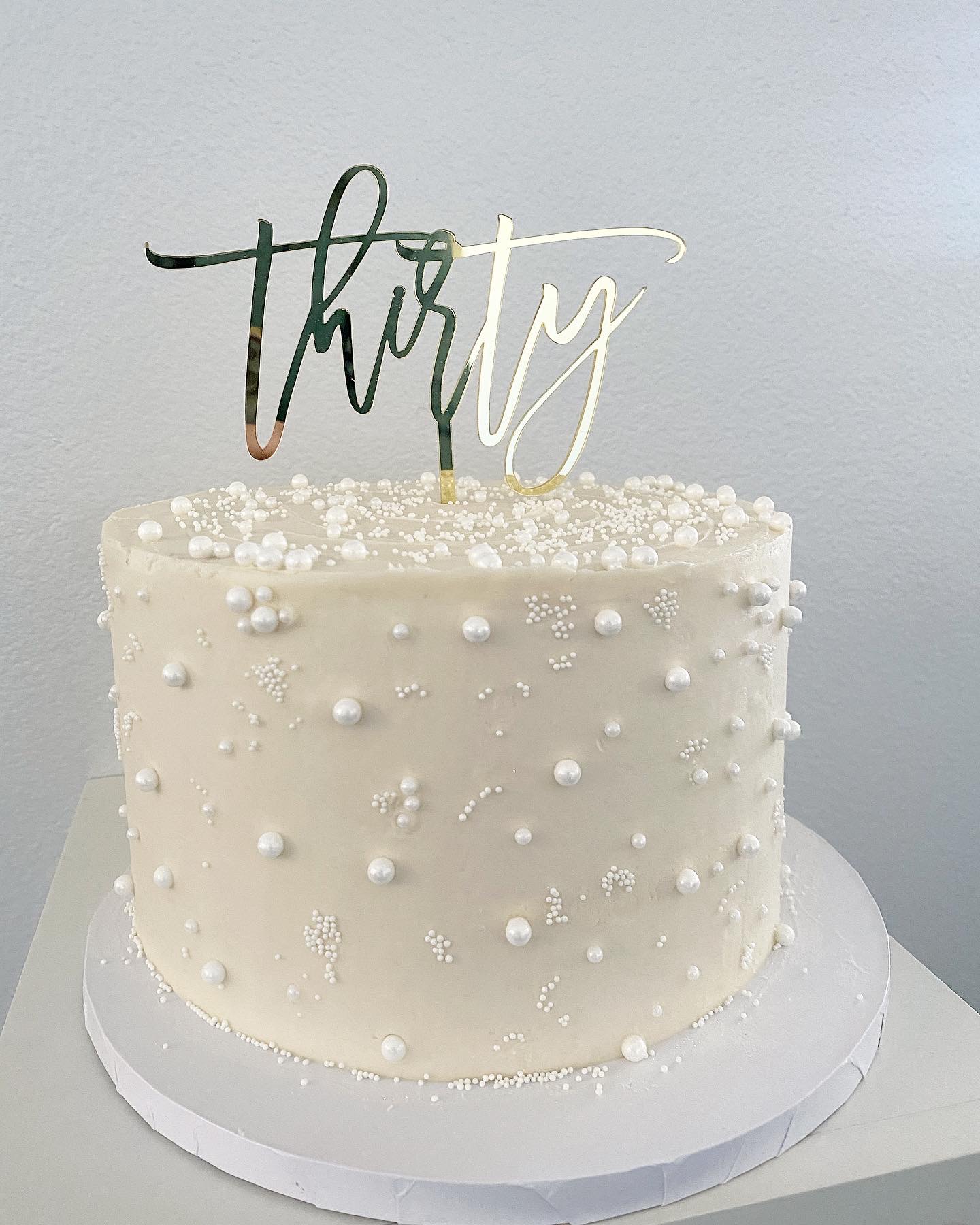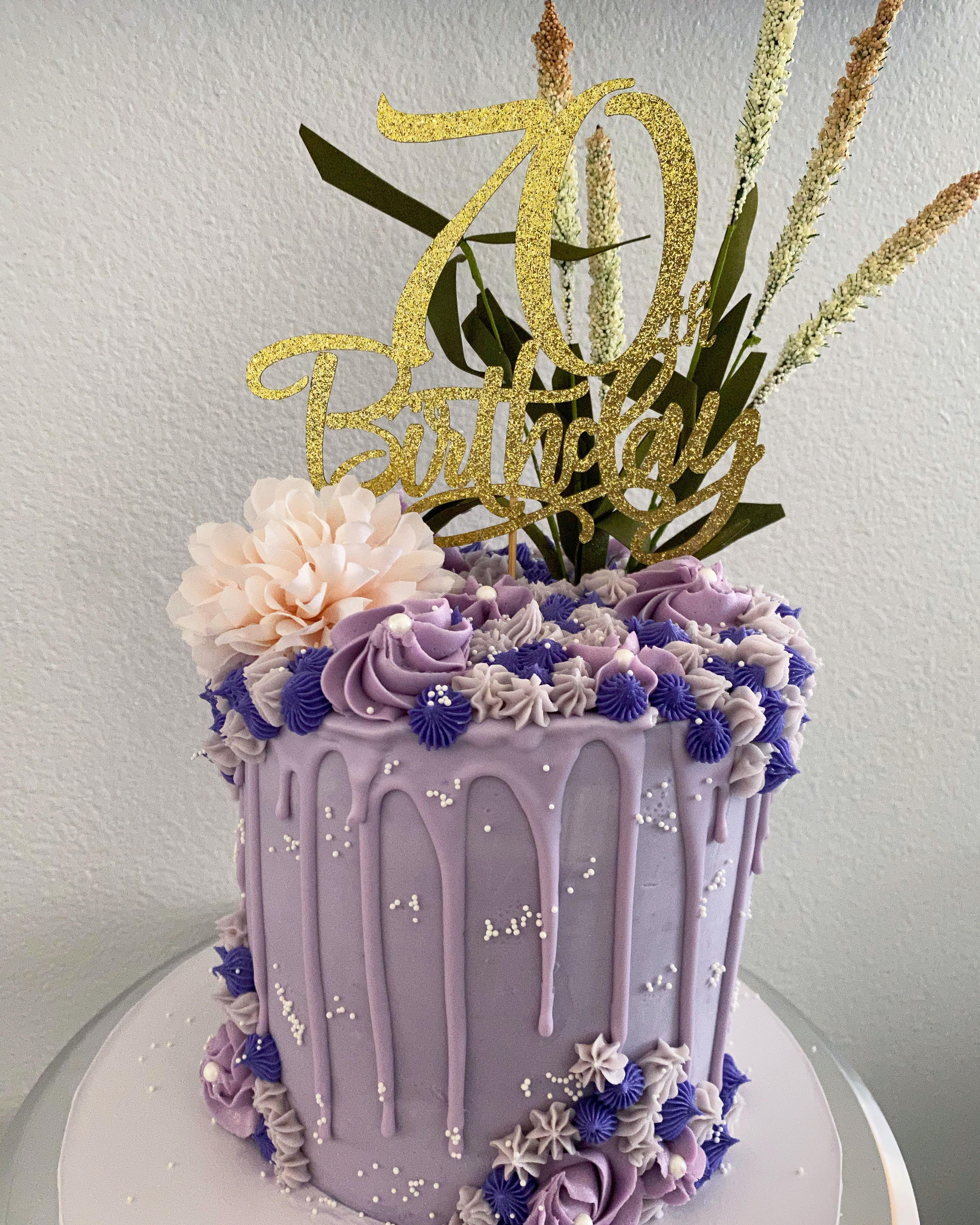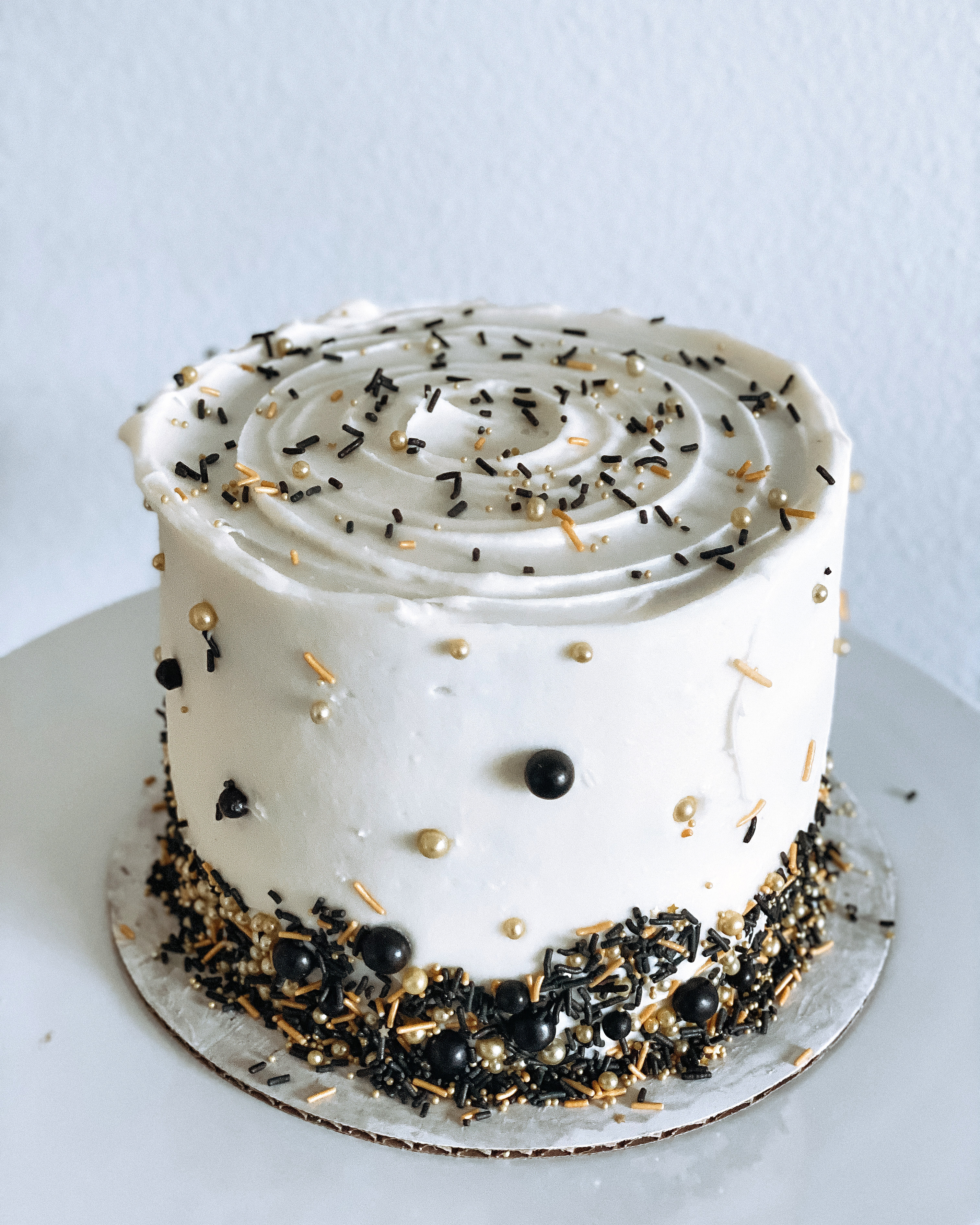 A 6″ cake can serve anywhere from 10-20 people (depending on how you serve it up). Most of my 6″ cakes are either three or four layers of sponge. Yes, I say sponge because I watch way too much of The Great British Baking Show. A 6″ cake starts at $95 and increases based on design and flavors.
