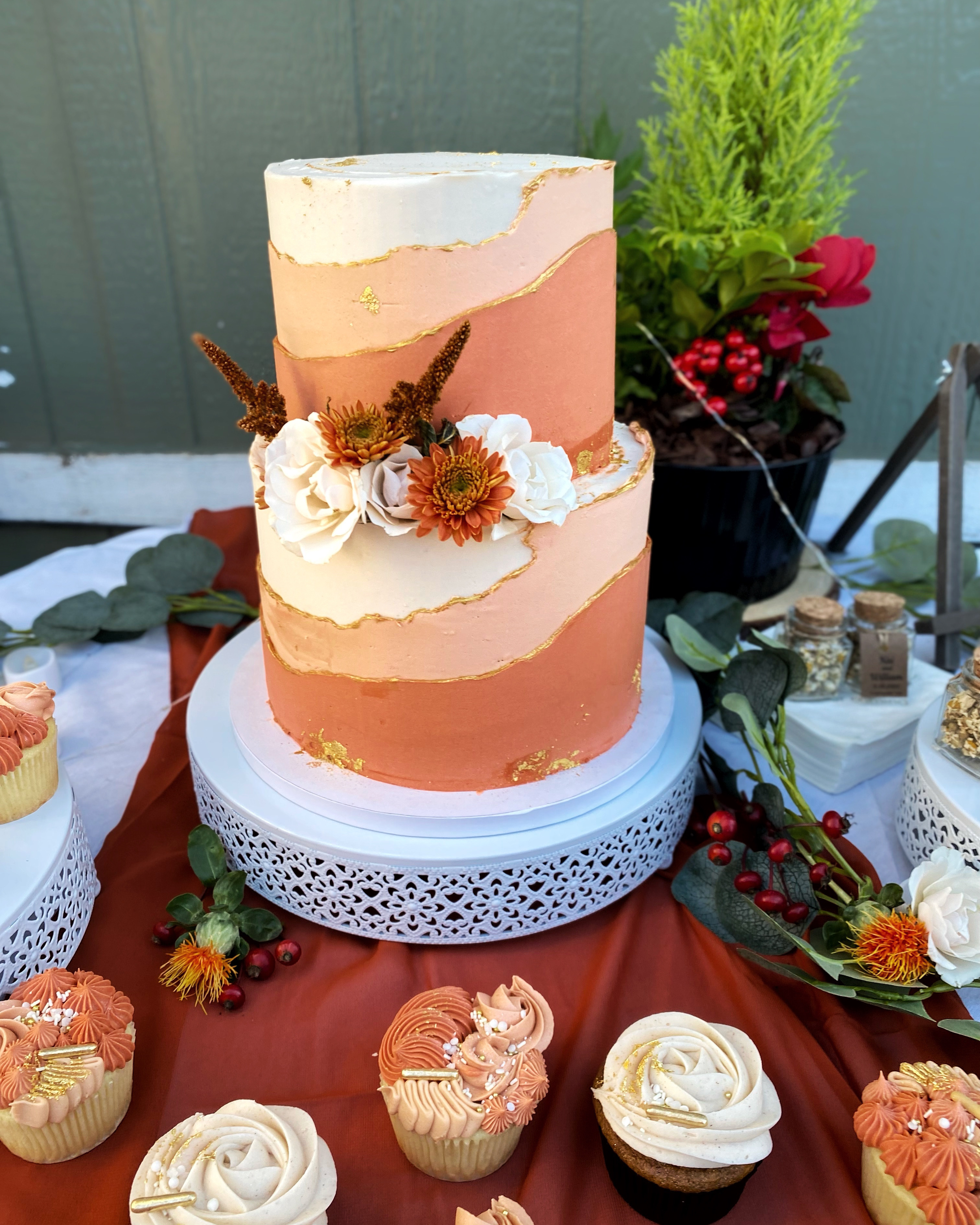 Tiered cakes can come in many different sizes and just depends on what you’re looking for. Tiered cakes allow for a little more design as I have plenty of workable space to play around with! Tiered cake pricing will vary based on the design specifics.